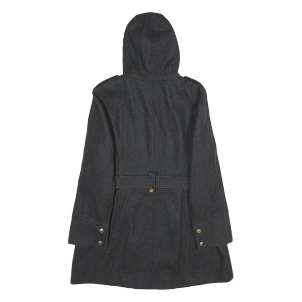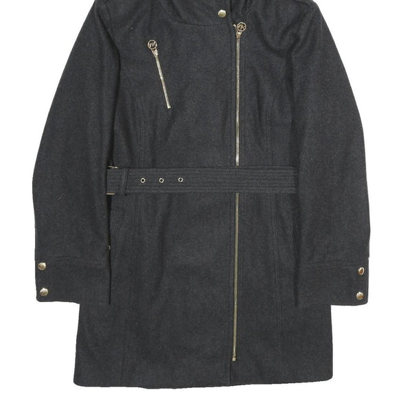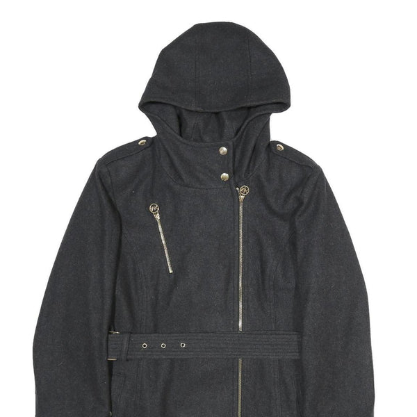 MICHAEL KORS Womens Black Hooded Wool Blend Jacket M Zip Coat Elegant Classic