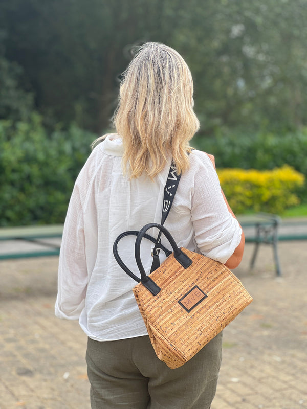Elevate your style with our Handcrafted Mini Tote Bag, made from 100% natural Portuguese cork and designed for the eco-conscious fashionista. This lightweight yet durable mini tote is perfect for your everyday needs, whether it's a casual day out or a sophisticated evening. Featuring our unique MVB logo strap, the bag can be worn crossbody or handheld, giving you the flexibility to style it as you prefer.
