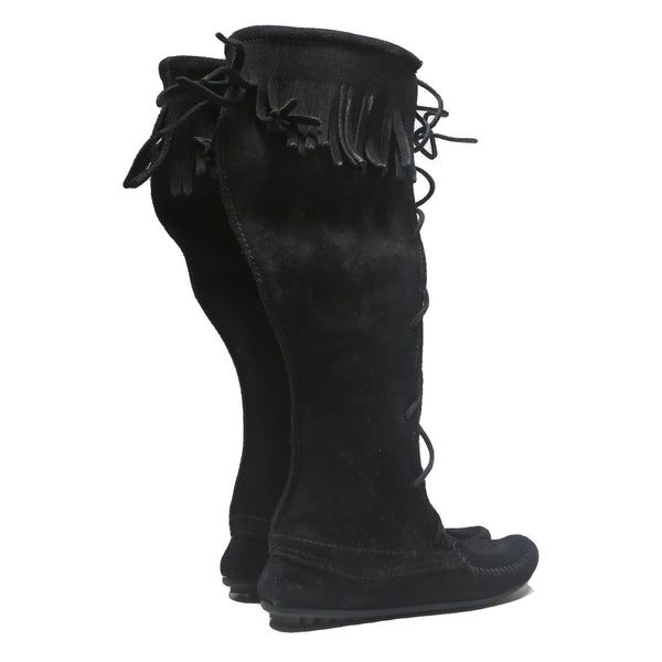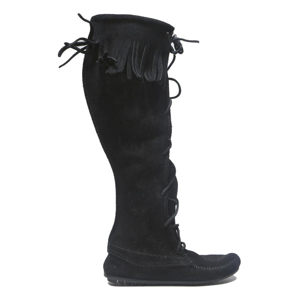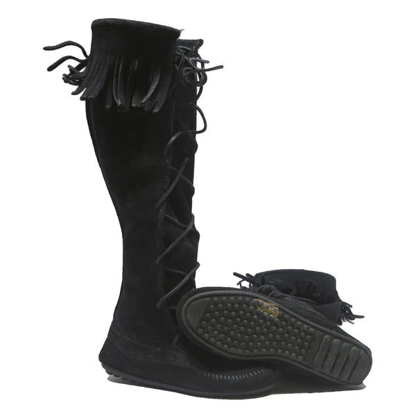 Minnetonka lace-up womens knee high boots black leather uk 4 comfortable stylish