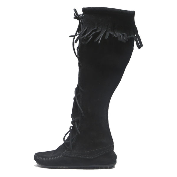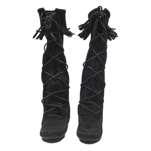MINNETONKA Lace-Up Womens Knee High Boots Black Leather UK 4 Comfortable Stylish