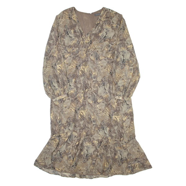 Home MINT VELVET Womens Day Dress Brown Animal Print Long Sleeve Long 2XL