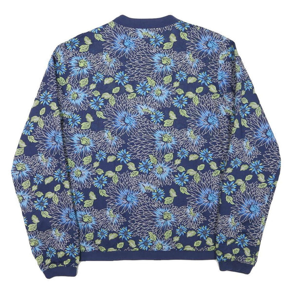 Misericordia womens blue floral cotton blend jacket m button closure bomber