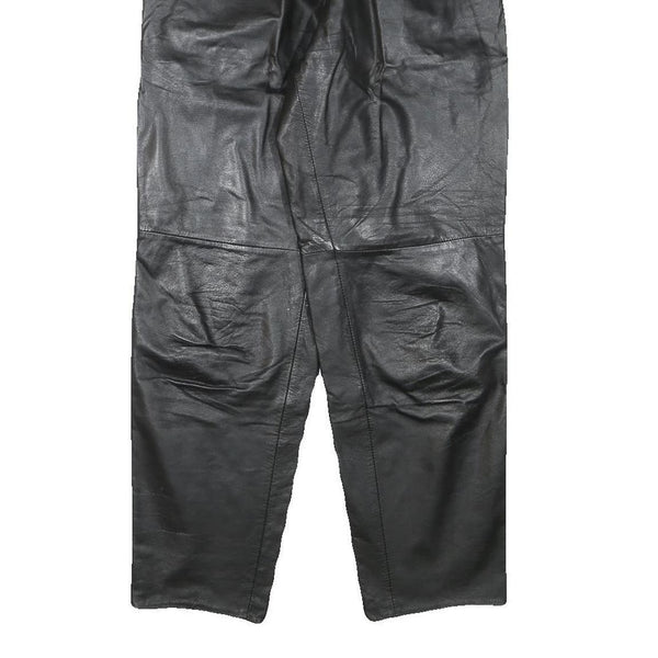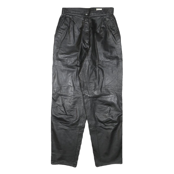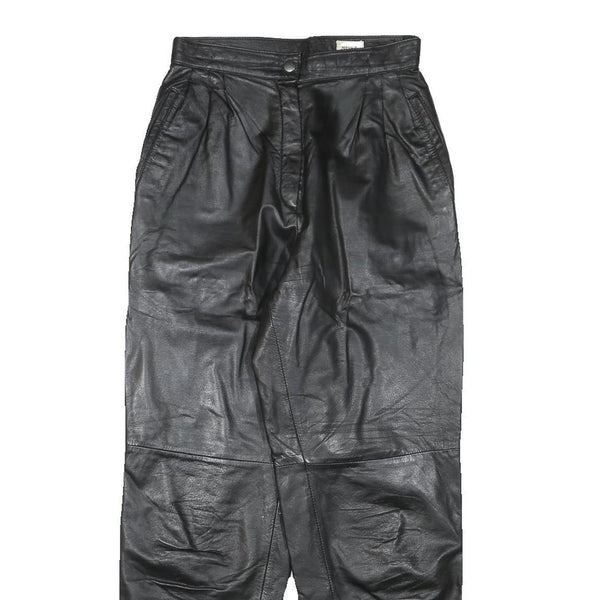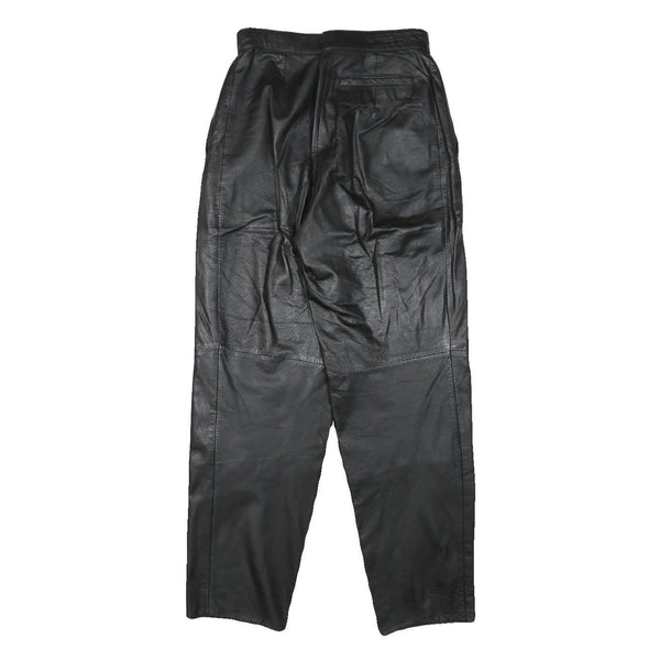 MISS A Womens Leather Black Relaxed Tapered Trousers W25 L28 Zip Pocket