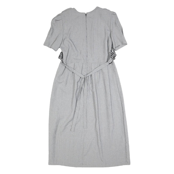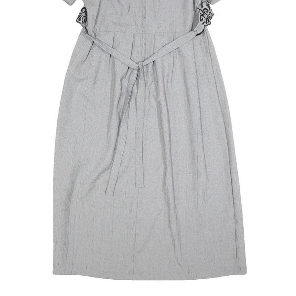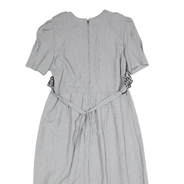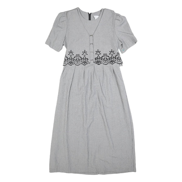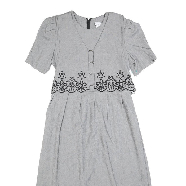 MISS DORBY Womens Grey & Black Embroidered Midi Dress Polyester Puff Sleeve L