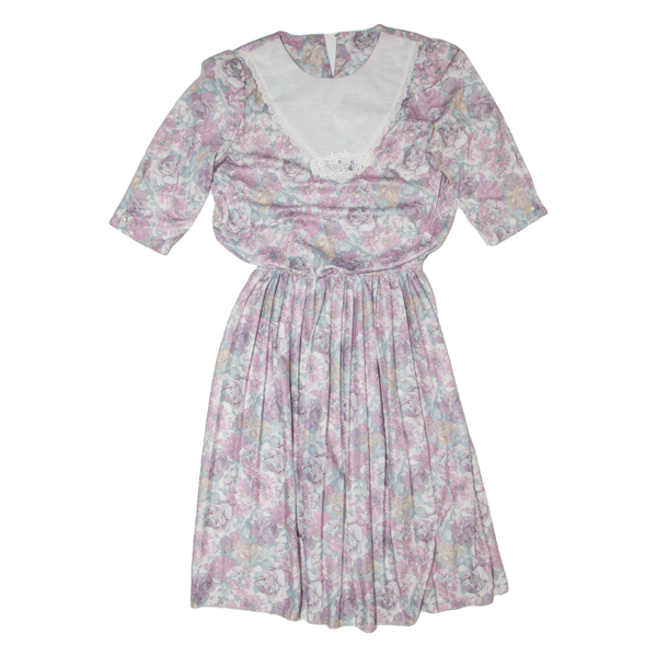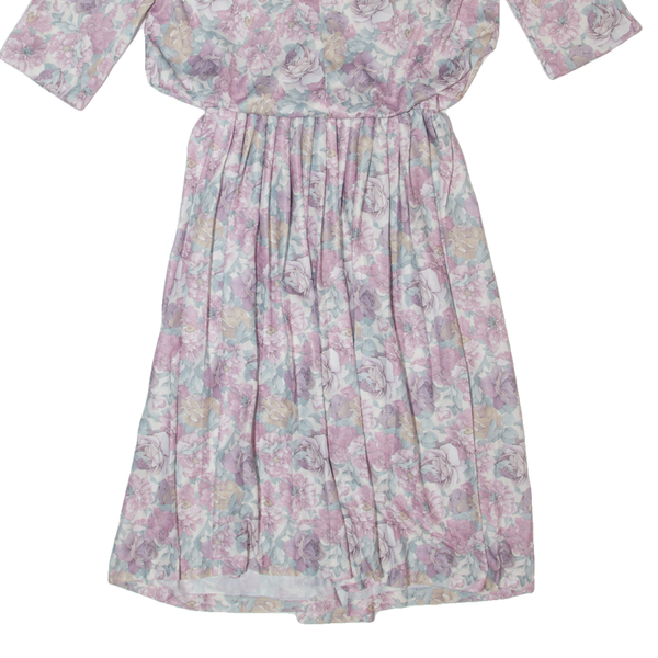 Home MLS LTD Womens A-Line Dress Pink 80s Floral Short Sleeve Midi L