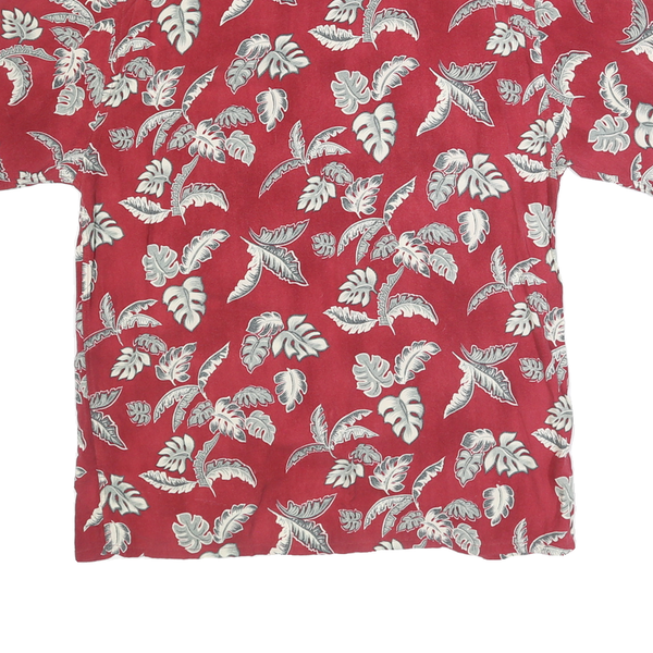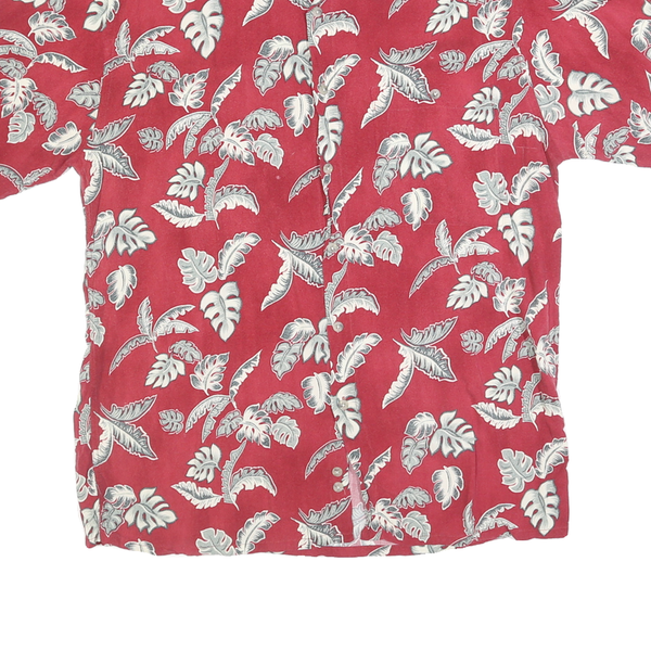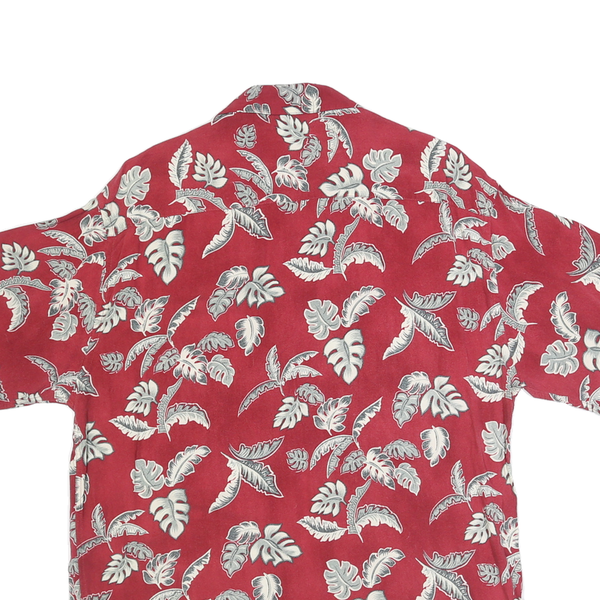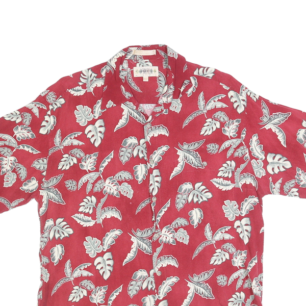 MODA CAMPIA Mens Red Leaf Pattern Rayon Shirt M Summer Casual Beachwear