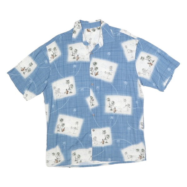 MODA CAMPIA MODA Mens Blue White Hawaiian Shirt L Rayon Tropical Print Summer