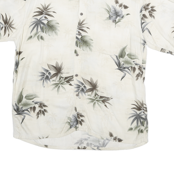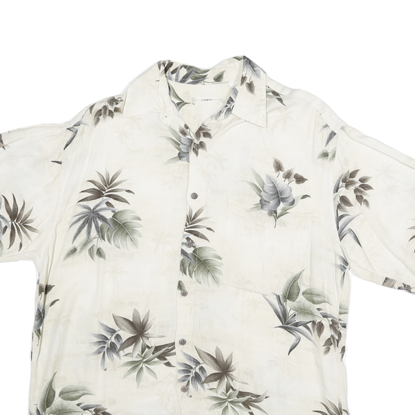 MODA CAMPIA MODA Mens Cream Green Leaf Print Shirt M Relaxed Summer Casual