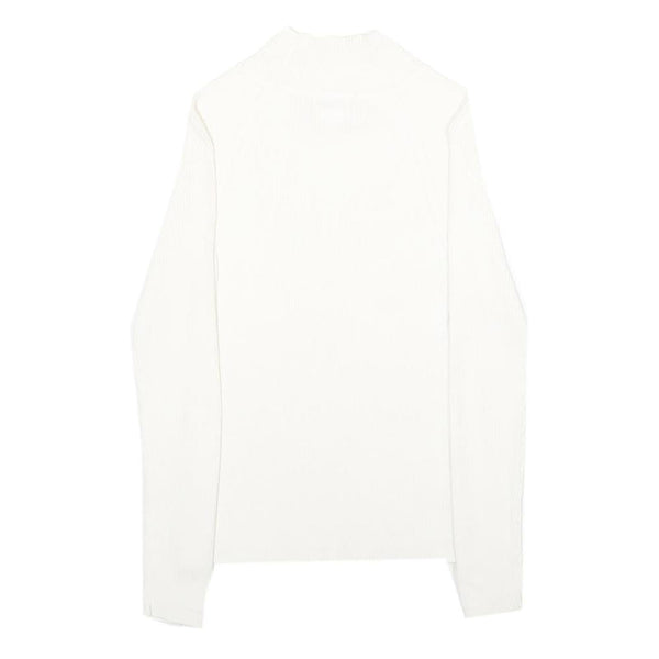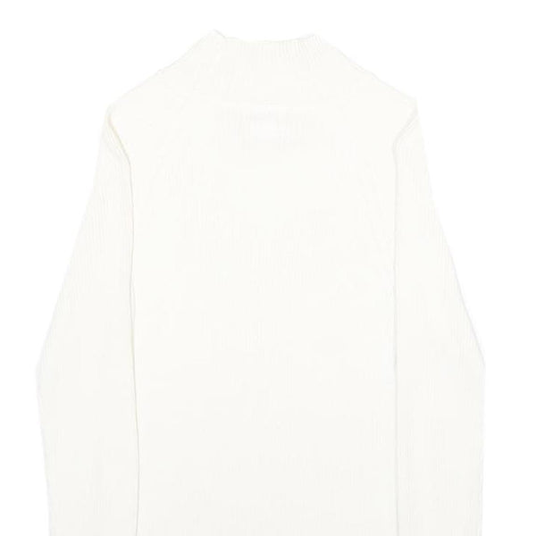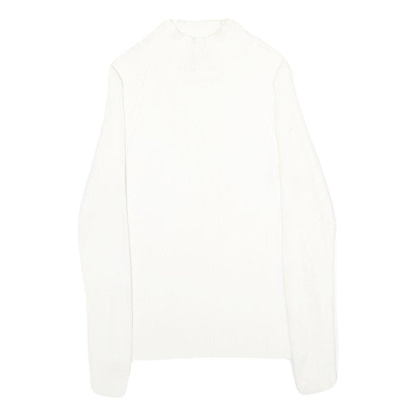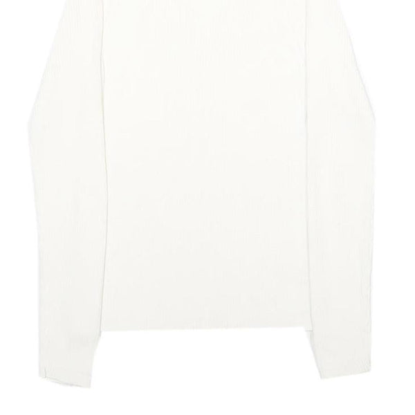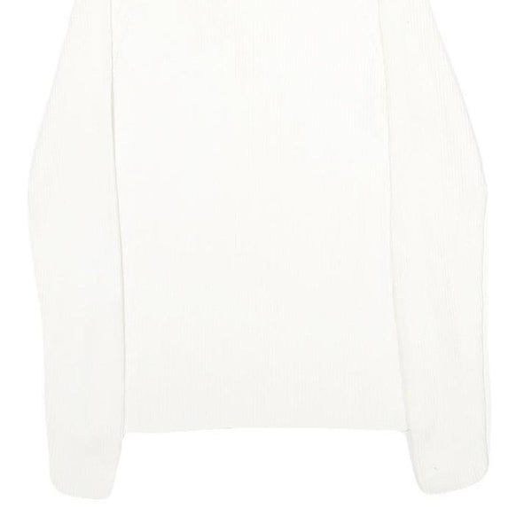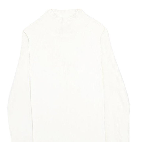 MODA INTERNATIONAL Womens White Plain Cotton Jumper Crew Neck Rib Knit S