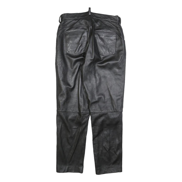 MODE Mens Leather Black Slim Tapered Trousers W30 L30 Stylish Zip Closure