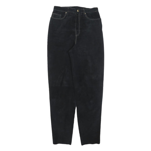 MODE Womens Leather Black Regular Fit Zip Trousers W28 L32 Stylish Comfortable