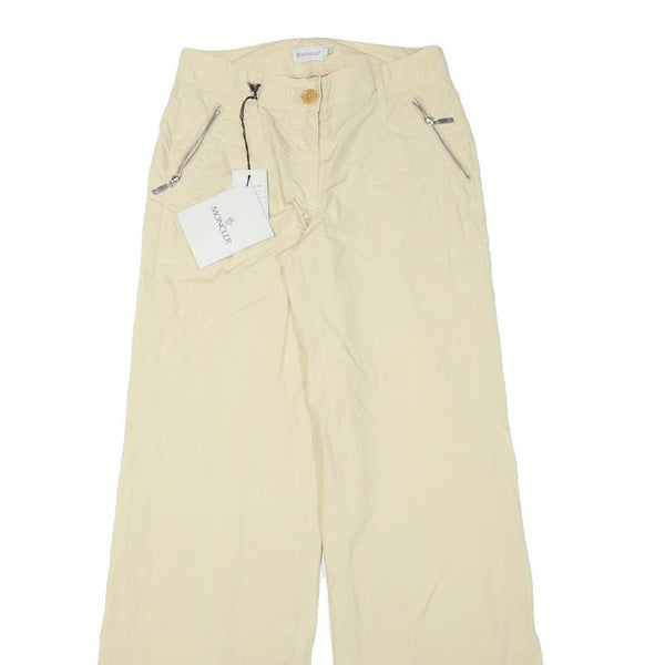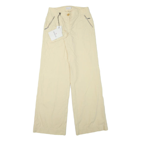Home MONCLER Womens Cotton Blend Beige Relaxed Wide-Leg Trousers W28 L35 Stylish Zip
