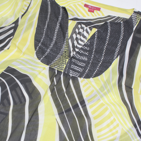 MONSOON Sheer Womens Printed Top Yellow V-Neck Silk Crazy Pattern UK 12