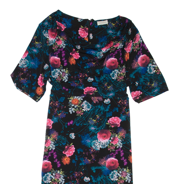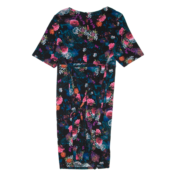 Monsoon womens day dress black viscose floral short sleeve knee length m