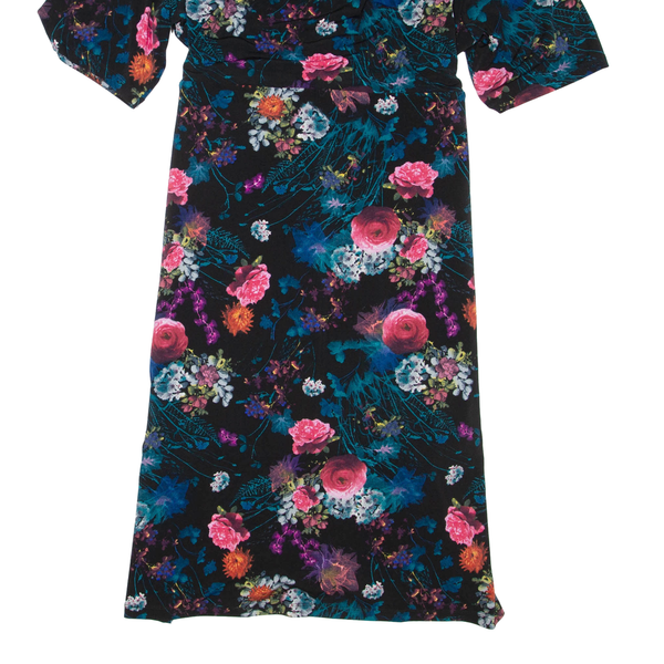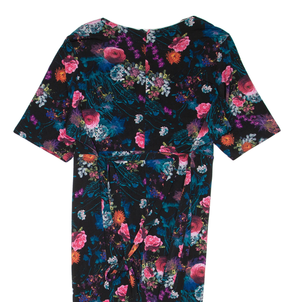 MONSOON Womens Day Dress Black Viscose Floral Short Sleeve Knee Length M