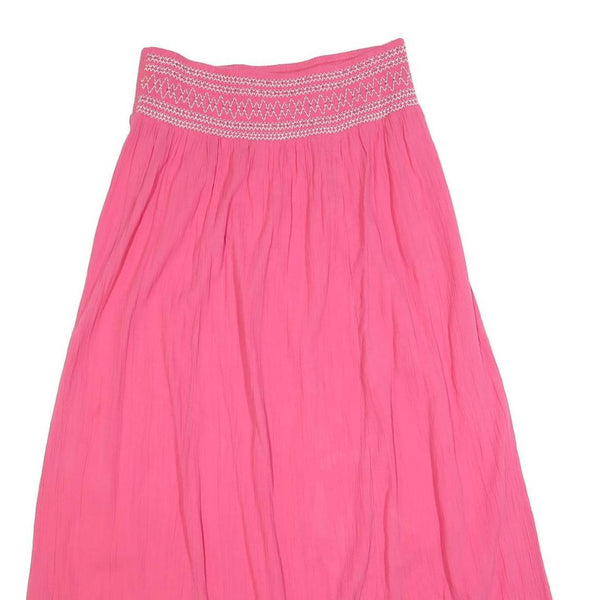 MONSOON Womens Pink Midi Woven Skirt Embroidered Waistband M Comfortable Stylish