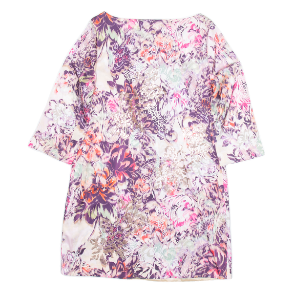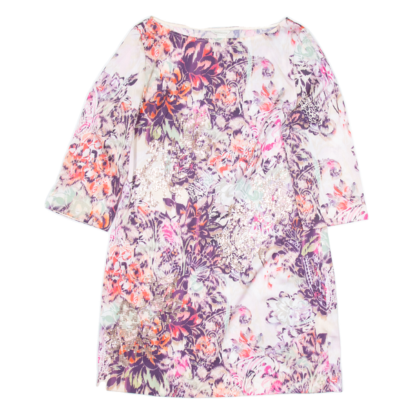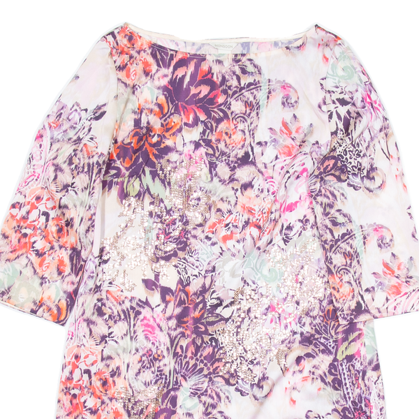 MONSOON Womens Shift Dress Pink Floral Short Sleeve Knee Length UK 12