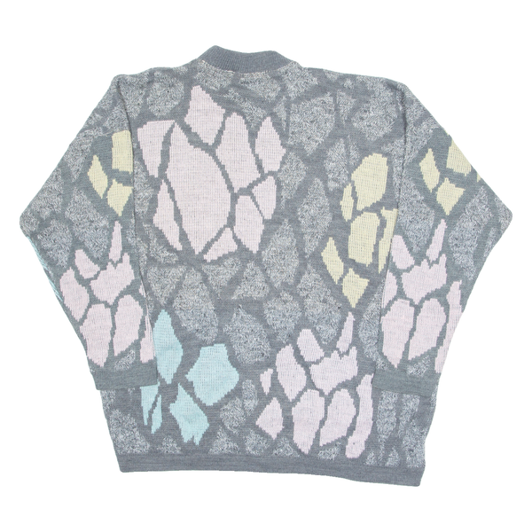 MORE IN MOTION Womens Patterned Jumper Grey Crazy Pattern 90s L