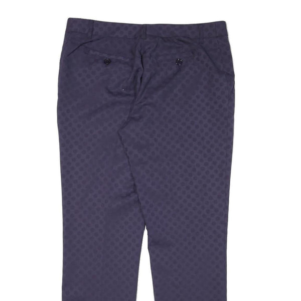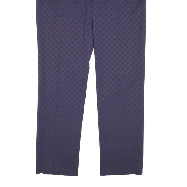 These Womens MOSCHINO trousers feature a subtle embossed dot pattern in a rich blue shade, offering a sophisticated texture to classic straight-leg trousers. The front closure includes a zip and button, with belt loops for added waist styling possibilities.