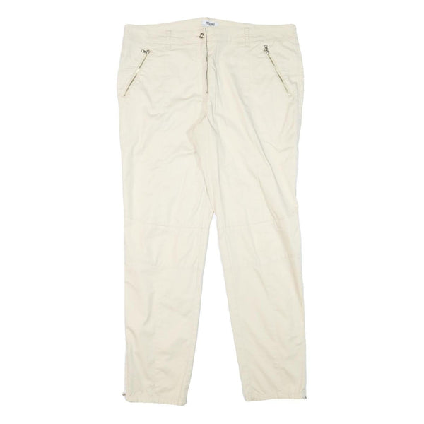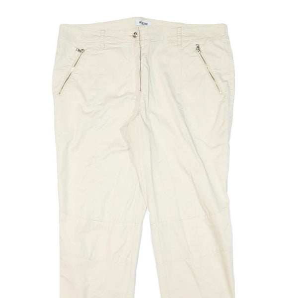 MOSCHINO Womens Cotton Blend Cream Slim Trousers W35 L29 Stylish Zip Pockets