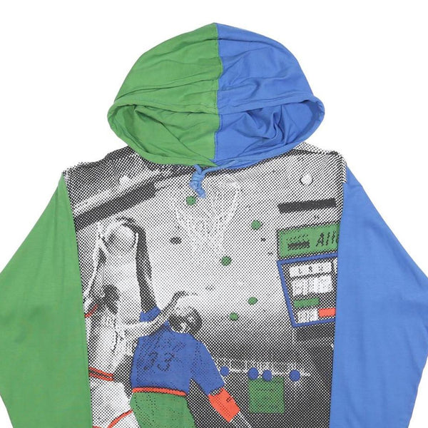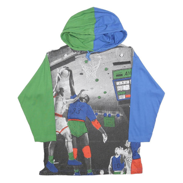 MOSKITO Boys Blue & Green Basketball Graphic Cotton Blend Hoodie L Colourblock