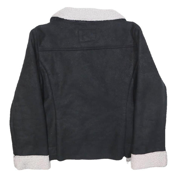 Mossimo womens black jacket m polyester faux shearling zip winter warm