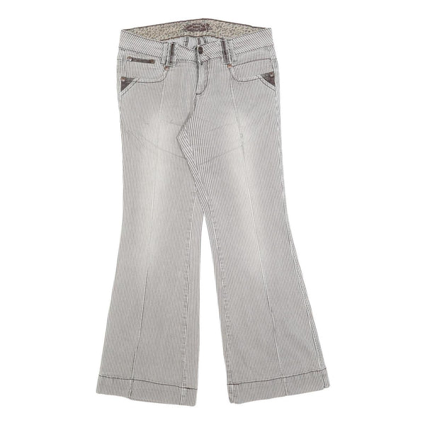 MOSSIMO Womens Cotton Blend White & Brown Pinstripe Regular Flared Trousers W28