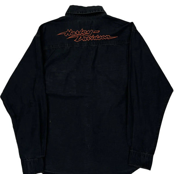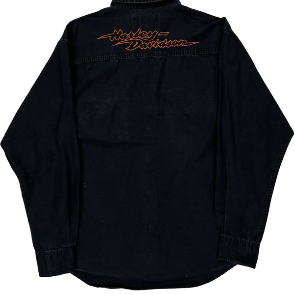 Motorcycle harley davidson graphic denim shirt - medium black cotton