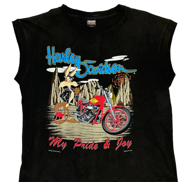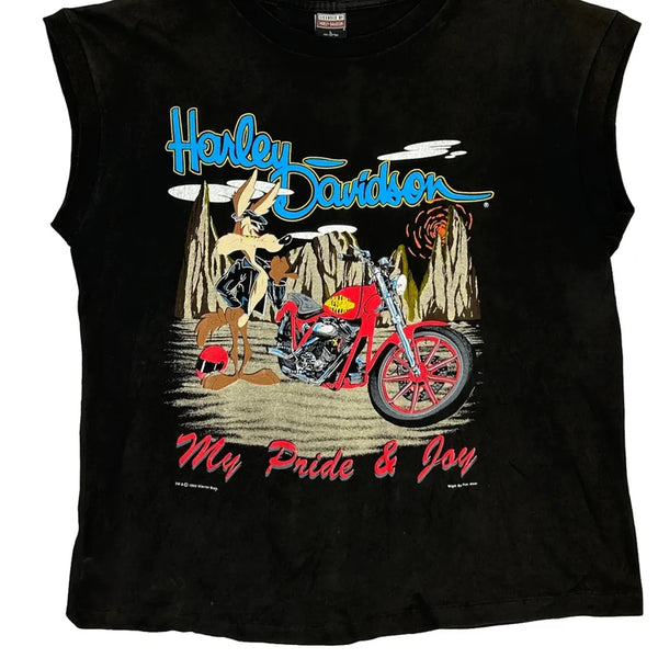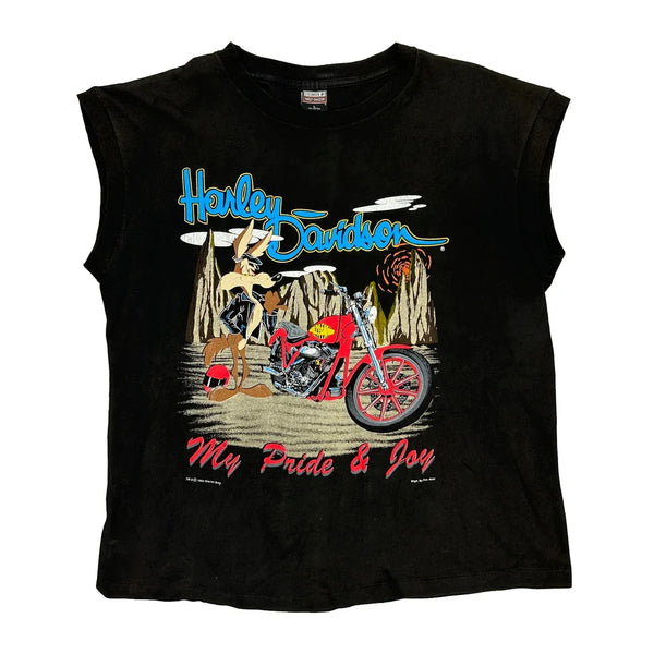 Sleeveless Harley Davidson T-Shirt With Cartoon Graphic.