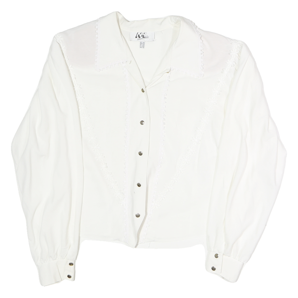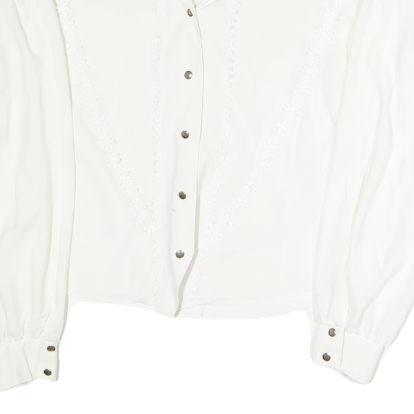 N+L Womens White Blouse Long Sleeve Collared Plain UK 12 Elegant Buttoned