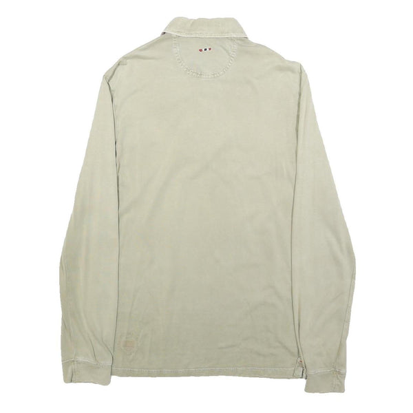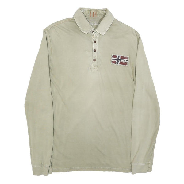 NAPAPIJRI Mens Beige Polo Shirt S Long Sleeve Plain Cotton Blend Casual Top