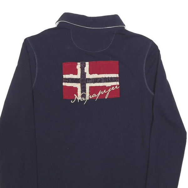 NAPAPIJRI Womens Blue Long Sleeve Plain Polo Shirt M Cotton Blend Flag Logo