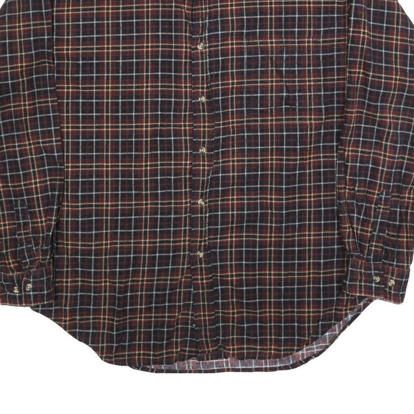 NATURAL LIFE Mens Red Brown Check Shirt XL Button Down Long Sleeve Cotton