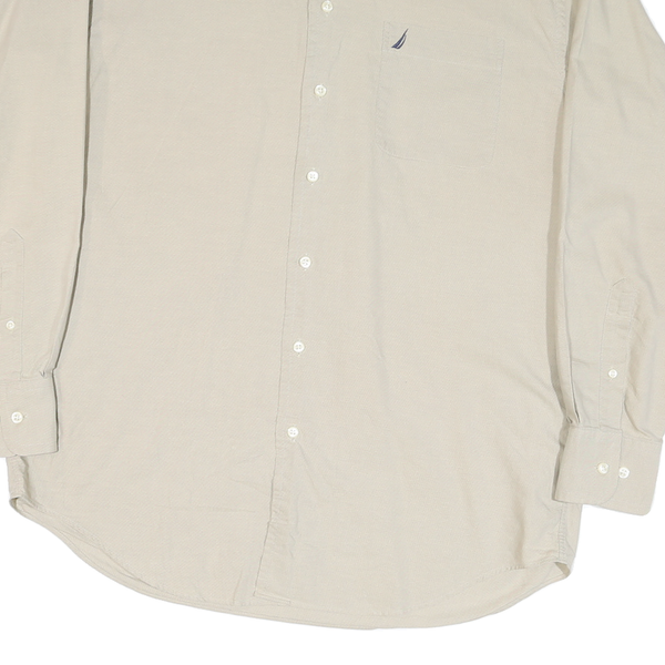 NAUTICA Mens Beige Cotton Blend Shirt L Classic Long Sleeve Button Shirt