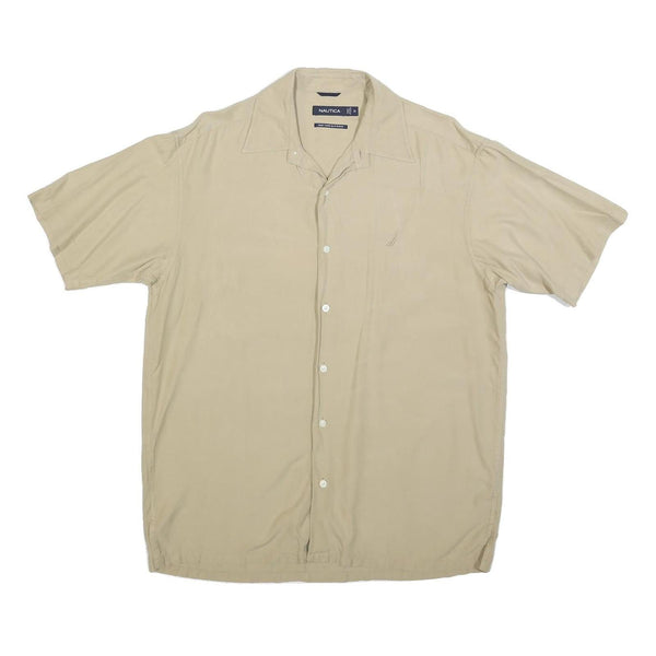 NAUTICA Mens Beige Silk Blend Shirt M Casual Elegant Summer Button Up