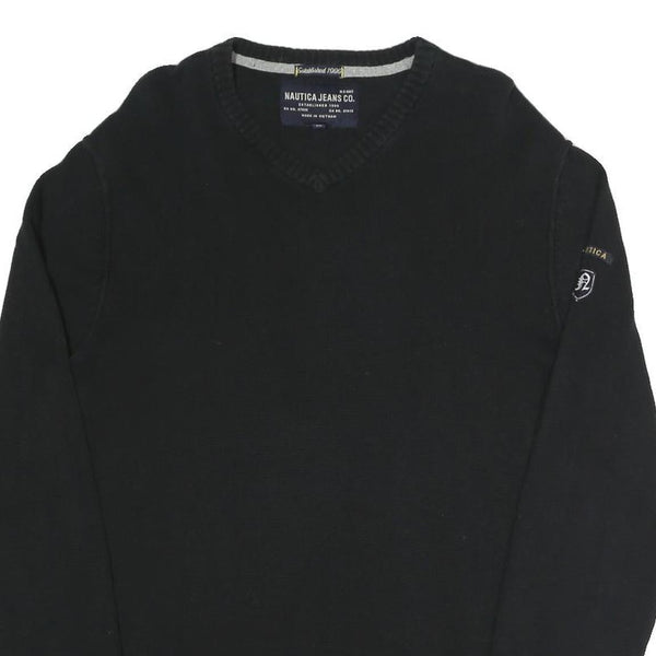 NAUTICA Mens Black Cotton Blend Plain V-Neck Basic Knit Jumper M Classic Style