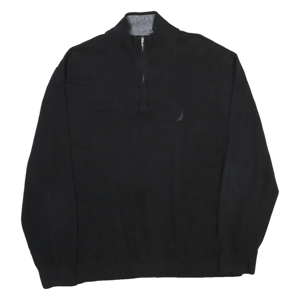 NAUTICA Mens Black Plain Pullover Jumper Crew Neck Cotton 2XL Casual Stylish