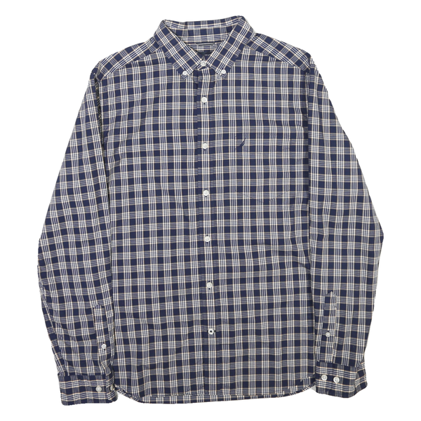 NAUTICA Mens Blue & Cream Check Button-Down Shirt L Classic Cotton Blend Casual