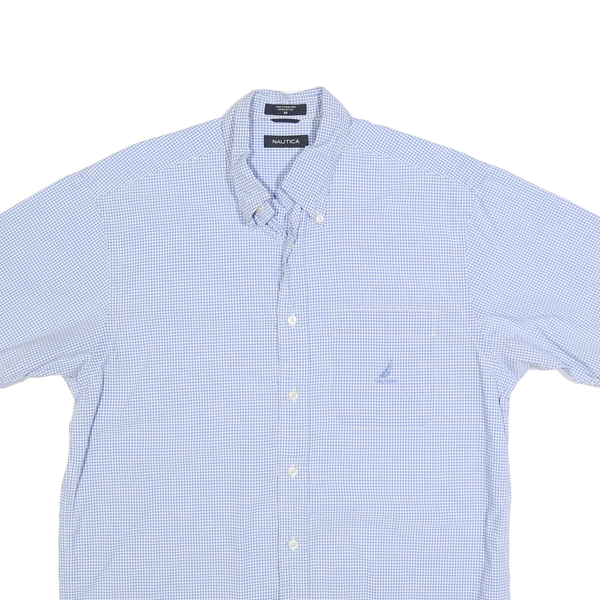 NAUTICA Mens Blue & White Check Shirt M Cotton Blend Casual Summer Button-Down