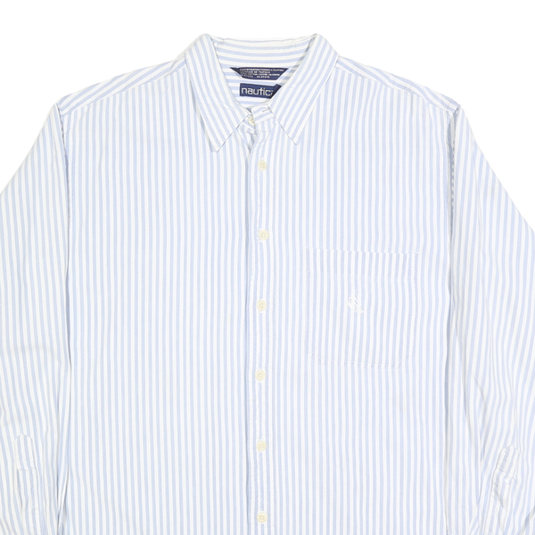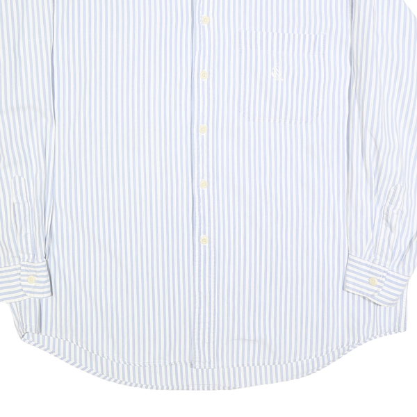 NAUTICA Mens Blue & White Stripe Cotton Blend Shirt XL Long Sleeve Button Collar