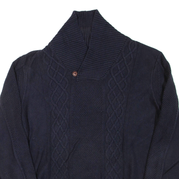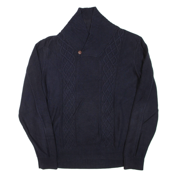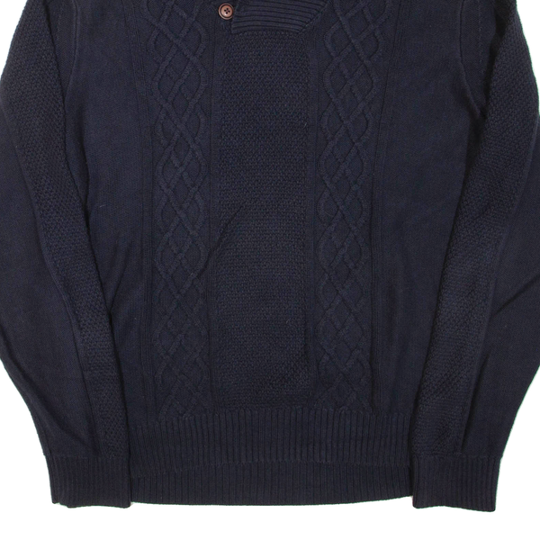 NAUTICA Mens Jumper Blue Button Neck Chunky Knit L