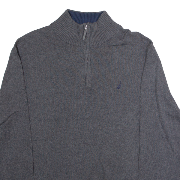 NAUTICA Mens Jumper Grey 1/4 Zip Tight Knit XL