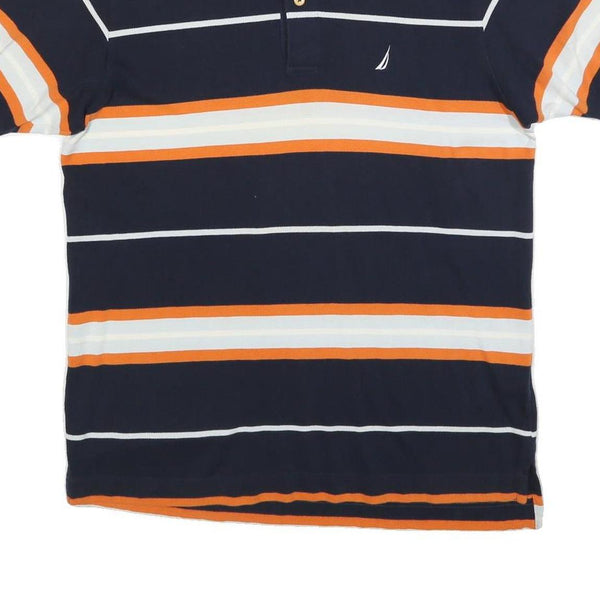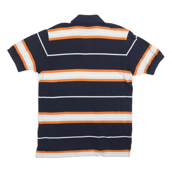NAUTICA Mens Navy Blue & Orange Striped Short Sleeve Polo Shirt S Cotton Blend
