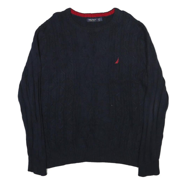 NAUTICA Mens Navy Patterned Cotton Blend Jumper Crew Neck Cable Knit L Stylish