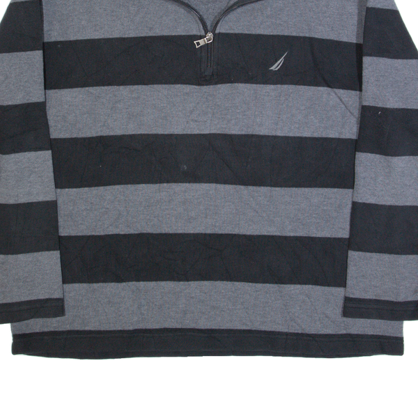NAUTICA Mens Patterned Jumper Grey Striped 1/4 Zip Tight Knit L