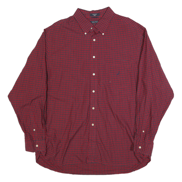 Home NAUTICA Mens Red & Navy Check Shirt 2XL Classic Button Down Long Sleeve Casual