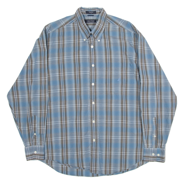 NAUTICA Mens Shirt Blue Check Long Sleeve L