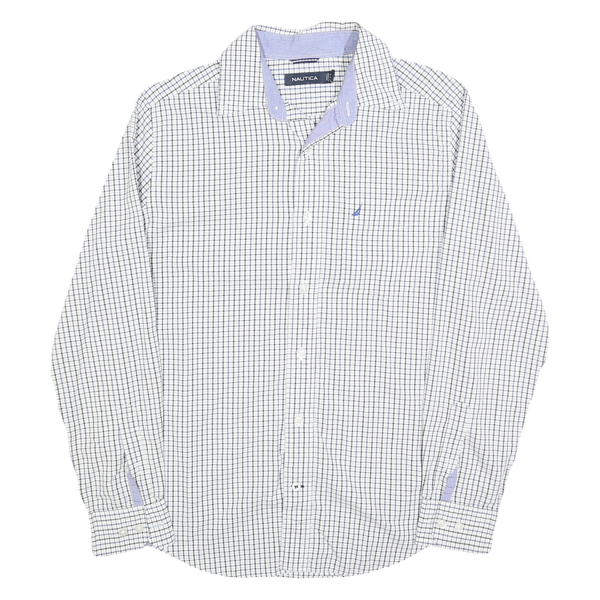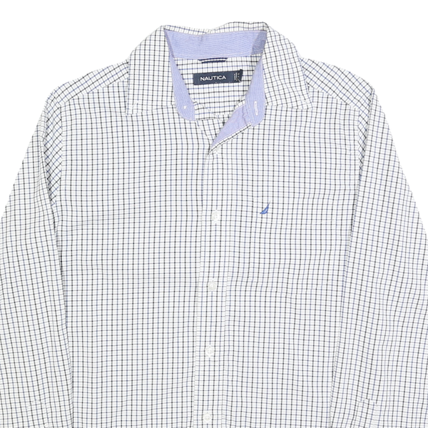 Home NAUTICA Mens White & Blue Checked Shirt S Cotton Blend Classic Fit Casual Button
