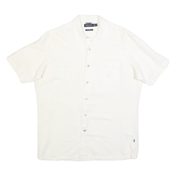 NAUTICA Mens White Cotton Blend Short Sleeve Shirt M Classic Fit Casual