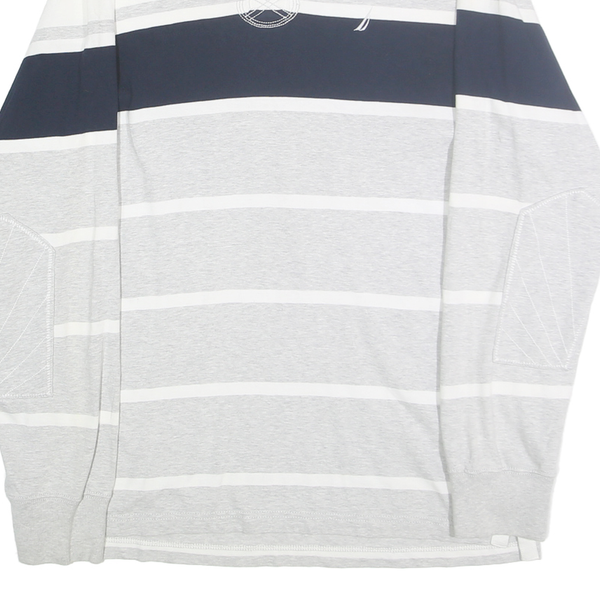 NAUTICA Mens White & Grey Long Sleeve Striped Polo Shirt L Cotton Casual
